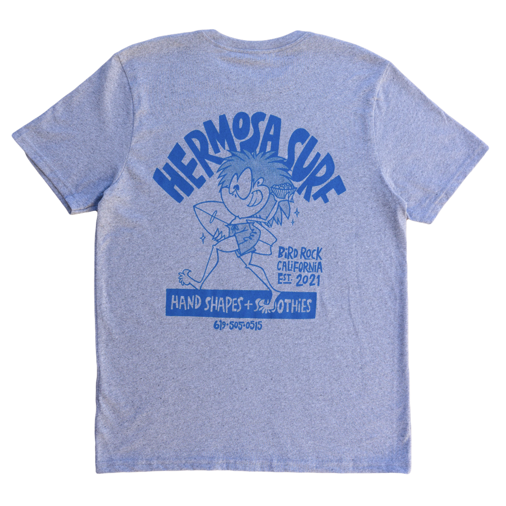 100% Recycled Cotton Heather T-Shirt with our "Acai Surfer" print.